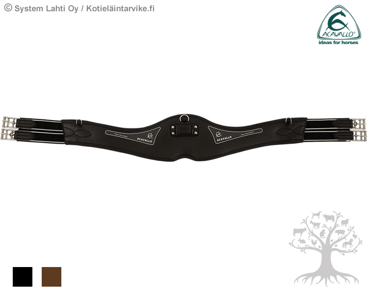 Acavallo Anatomic Girth Comfort Gel. The Acavallo comfort girths are completely made of composite material (TPU) and eco-leather, and equipped with the new Acavallo Gel Padding System. The special design of this gel panel eliminates the risk of pinching and relieves pressure on the sensitive internal organs of your horse, also allowing an increased blood circulation and supply of oxygen. The arrangement of the individual gel padding elements has been developed to facilitate breathing and reduce transpiration by means of a sophisticated airflow pattern, preventing excessive heat accumulation even under high-performance conditions.