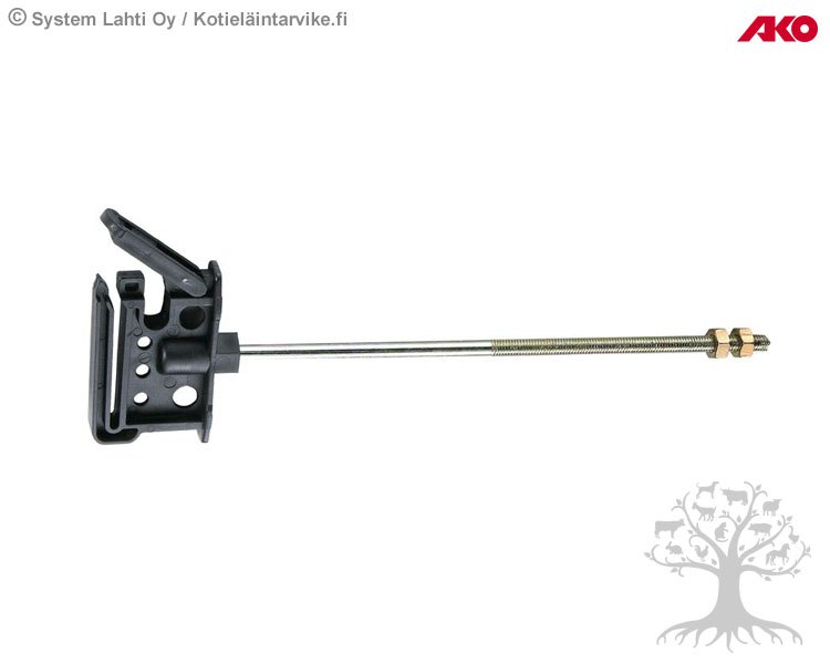 Ako Offset Tape Insulator M6, 10pcs. Offset insulator protects the posts from being chewed and keeps the animals away from the fence. The support screw is 20cm long. The insulator can hold poly wire, rope up to Ø 6 mm and tape up to 40mm. Galvanised support Ø 6 mm. Thread is M6 and length is 10cm. 2 nuts included. Pack size: 10pcs