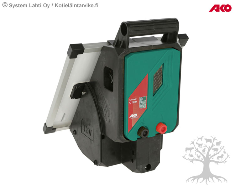 Ako Solar Device Sun power S 1500. Environmentally friendly and cost-effective Solar device with a built-in solar panel. Effective solar unit for normal fence systems with little vegetation. Ideal for horse and cattle paddocks. Maintenance-free from spring to autumn!