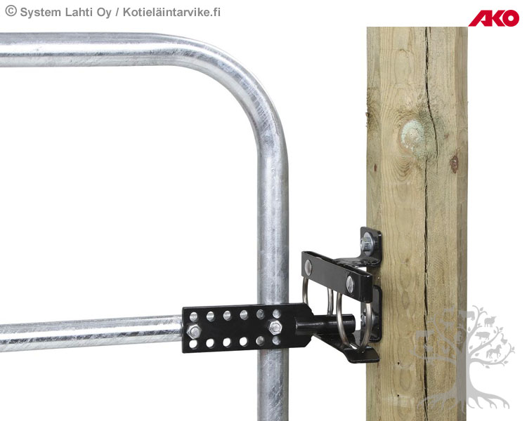 Ako Swing-Through Lock for Fence Gates. The swing-through lock allows the gate to be opened in both directions. The lock is fitted to the post and gate using the screws supplied. can be used on all fence gates. Material: metal.