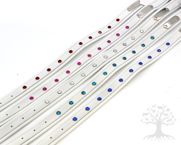 Arli Strassipanta on näyttävä, valkoista nahkaa strassikoristeilla. Kotimainen ja laadukas, panta on valmistettu 100% suomalaisesta nahasta. Pannassa on sisällä venymätön kudos, jonka ansiosta nahka pysyy hyvin kuosissaan eikä pääse venymään.