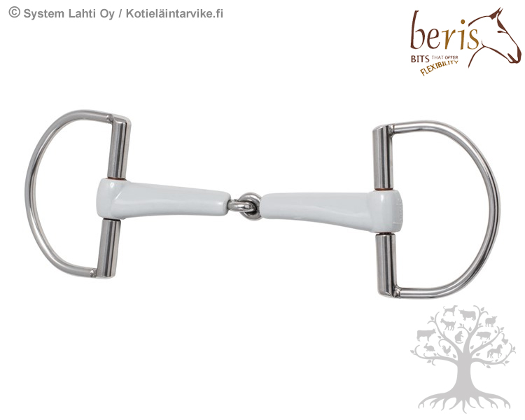 Beris D-ring Single Jointed. Beris Single Jointed -nivelkuolaimessa on teräsrunko, joka on päällystetty keskikovalla (medium) ja turvallisella elintarvikemuovilla. Suuosa on muotoiltu ja litistetty (ohut ja leveä kosketuspinta) niin, että se jakaa hevosen kieleen ja hammaslomaan kohdistuvan paineen tavanomaista tasaisemmin. Keskiosaan päin matalat ja loivasti nousevat sivunivelet antavat hieman tilaa myös kielelle. Lisäksi kuolaimessa mahdollisimman pieni nivelliitos (nivelrengas), joka osaltaan vähentää hevosen suuhun kohdistuvaa painetta.