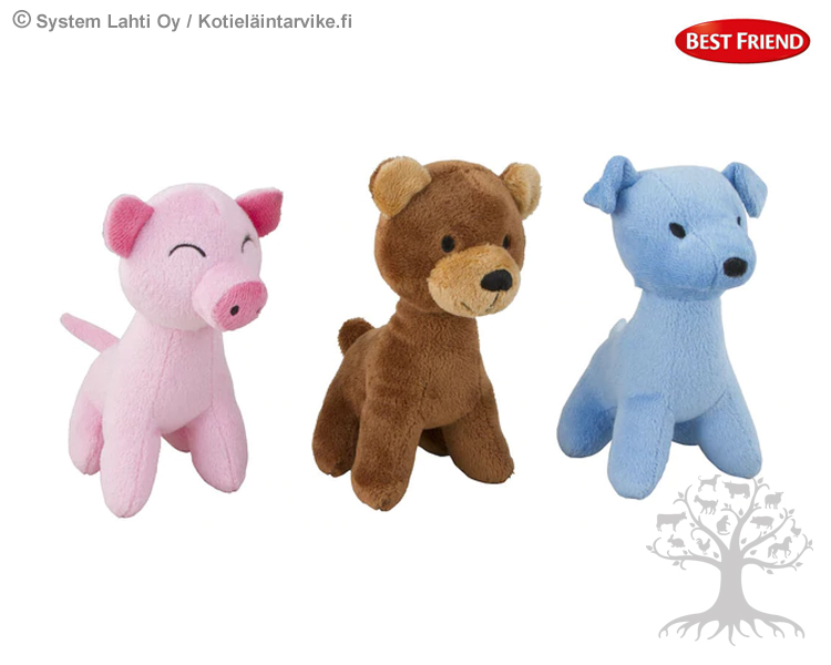 Best Friend Dog Plush Toy Tiny. Little Best Friend Tiny is the favourite soft toy for a small dog or puppy! It has a squeaker inside. Toy size about Ø 15 cm. Assortment. Soft toys are great for carrying, shaking and chasing around! Your dog’s very own toy, with its familiar smell, can give comfort in many cases, especially when a puppy moves to the new home or the dog is left in care at a new place. Best Friend toys are regularly tested for harmful chemicals. Pets should be supervised while they are playing and any broken toys should be discarded.
