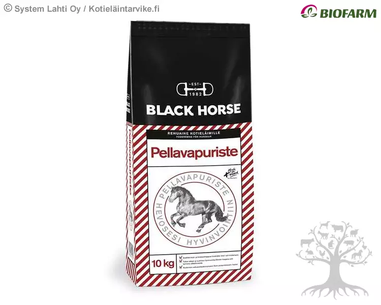 Black Horse Pellavapuriste 10kg. Kotimainen Black Horse Pellavarouhe on nyt Pellavapuriste täydennysrehu, jota käytetään suolistontoiminnan tueksi. Valmistettu Suomessa.