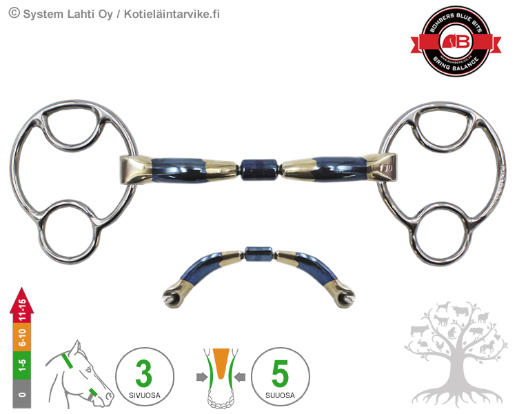 CHEEKPIECE - 2½ -ring Miia – Bridle’s cheekpiece attachment on bit to top side small ring. A ring cheek piece introduces poll pressure as well as creating leverage on the mouthpiece, the 2½-Ring Miia version is the softest as well as stable out of the normal 2½ ring alternatives as the special designed top side ring make it’s softens the leverage on the mouthpiece and poll. The new 2½ -ring Miia cheekpiece was designed by Miia Lahti / Kotielaintarvike.fi. Our close development and cooperation with Bombers has produced many new and innovative bits.