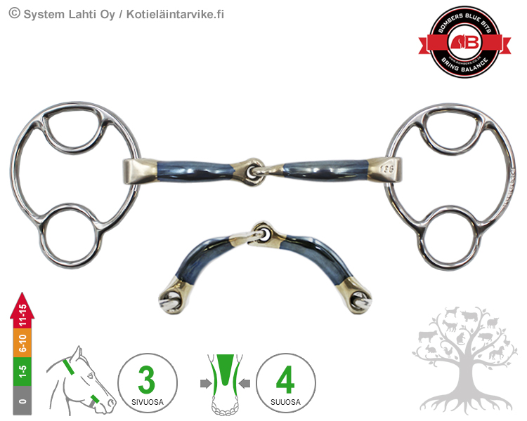 CHEEKPIECE - 2½ -ring Miia – Bridle’s cheekpiece attachment on bit to top side small ring. A ring cheek piece introduces poll pressure as well as creating leverage on the mouthpiece, the 2½-Ring Miia version is the softest as well as stable out of the normal 2½ ring alternatives as the special designed top side ring make it’s softens the leverage on the mouthpiece and poll. The new 2½ -ring Miia cheekpiece was designed by Miia Lahti / Kotielaintarvike.fi. Our close development and cooperation with Bombers has produced many new and innovative bits.