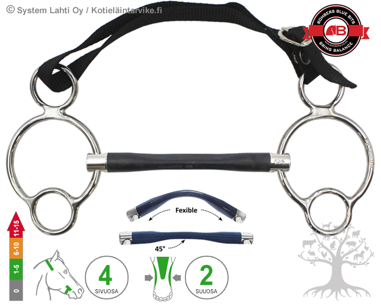 The bit consists of a mouthpiece inside the mouth and a cheekpiece acting outside the head. The overall effects of the bit should be mutually supportive and guiding aids for the horse, as the horse will not be able to understand the rider’s use of conflicting / mutually exclusive aids. When using stronger lever bit, the rider should be aware of and understand the operation of the bits and their effects. The unpleasant pressure or pain caused by the bit always causes resistance in the horse, like the so-called an escape reaction in which the rider loses contact or control of the horse. This type of loss of control of the horse usually only results in the choice of an even stronger bit, although the situation would usually require a softer alternative.