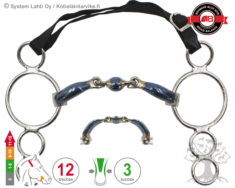 The bit consists of a mouthpiece inside the mouth and a cheekpiece acting outside the head. The overall effects of the bit should be mutually supportive and guiding aids for the horse, as the horse will not be able to understand the rider’s use of conflicting / mutually exclusive aids. When using stronger lever bit, the rider should be aware of and understand the operation of the bits and their effects. The unpleasant pressure or pain caused by the bit always causes resistance in the horse, like the so-called an escape reaction in which the rider loses contact or control of the horse. This type of loss of control of the horse usually only results in the choice of an even stronger bit, although the situation would usually require a softer alternative.