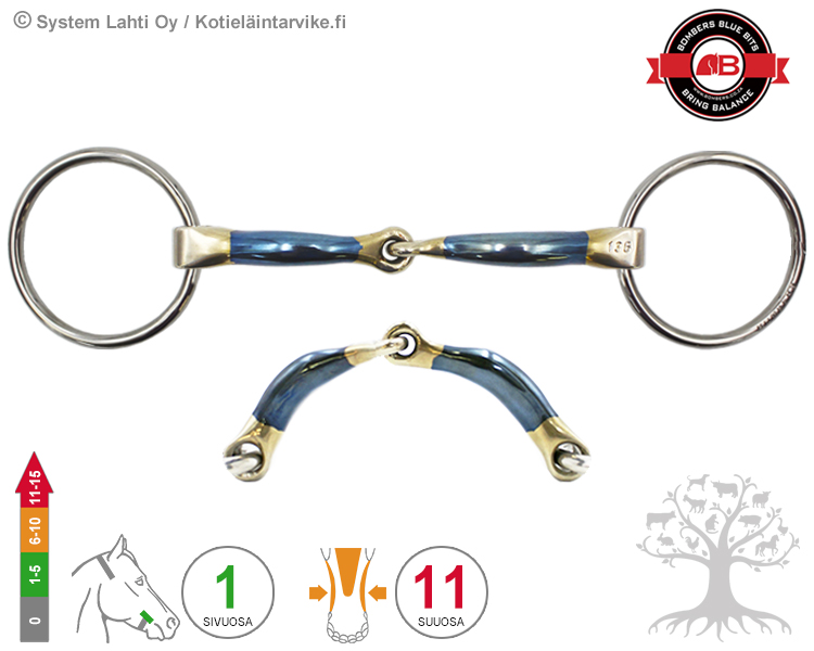 Bombers Bridoon Loose Ring Snaffle. Bombers Snaffle is a popular bit due to the curved mouthpiece which distributes pressure more evenly over tongue and bars and reduces the nutcracker action. The offset center link avoids the usual pressure point on the tongue. The nutcracker action results in the horse lifting its head, therefore offers a solution for the horse that runs with its head down. The mouthpiece can be optionally more curved, creating a more comfortable bend than the conventional, which reduces pinch and spreads pressure points around the bars.