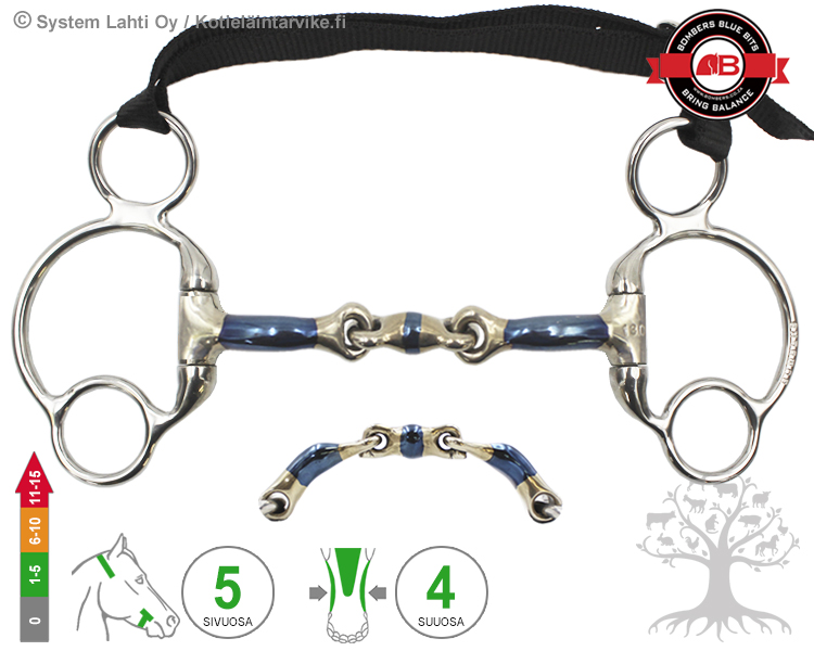 The bit consists of a mouthpiece inside the mouth and a cheekpiece acting outside the head. The overall effects of the bit should be mutually supportive and guiding aids for the horse, as the horse will not be able to understand the rider’s use of conflicting / mutually exclusive aids. When using stronger lever bit, the rider should be aware of and understand the operation of the bits and their effects. The unpleasant pressure or pain caused by the bit always causes resistance in the horse, like the so-called an escape reaction in which the rider loses contact or control of the horse. This type of loss of control of the horse usually only results in the choice of an even stronger bit, although the situation would usually require a softer alternative.