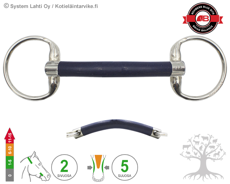 Bombers Eggbutt Bomber Blue Mullen. The Mullen distributes pressure evenly over all the structures of the mouth, while this avoids pressure points, it does make the Mullen a fairly strong bit. The material used allows the bit to remain light and it encourages salivation. It is particularly well suited to horses that object to metal mouth pieces.