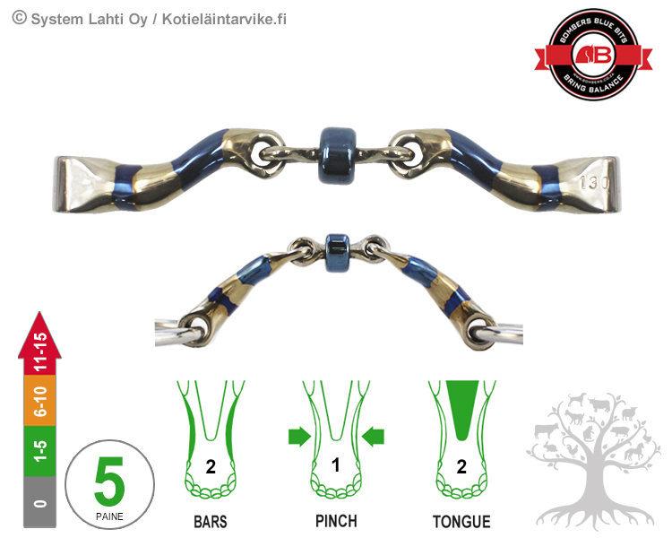 2 BREAK: Double break bits have a middle component that sits on the tongue. Some extent of pinch will occur. Made of 3 components.