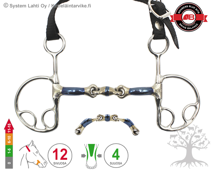 The bit consists of a mouthpiece inside the mouth and a cheekpiece acting outside the head. The overall effects of the bit should be mutually supportive and guiding aids for the horse, as the horse will not be able to understand the rider’s use of conflicting / mutually exclusive aids. When using stronger lever bit, the rider should be aware of and understand the operation of the bits and their effects. The unpleasant pressure or pain caused by the bit always causes resistance in the horse, like the so-called an escape reaction in which the rider loses contact or control of the horse. This type of loss of control of the horse usually only results in the choice of an even stronger bit, although the situation would usually require a softer alternative.
