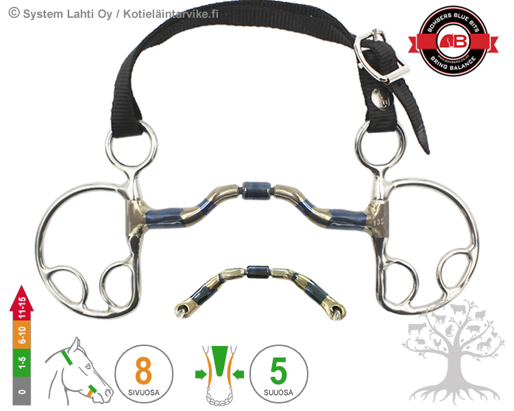 The bit consists of a mouthpiece inside the mouth and a cheekpiece acting outside the head. The overall effects of the bit should be mutually supportive and guiding aids for the horse, as the horse will not be able to understand the rider’s use of conflicting / mutually exclusive aids. When using stronger lever bit, the rider should be aware of and understand the operation of the bits and their effects. The unpleasant pressure or pain caused by the bit always causes resistance in the horse, like the so-called an escape reaction in which the rider loses contact or control of the horse. This type of loss of control of the horse usually only results in the choice of an even stronger bit, although the situation would usually require a softer alternative.