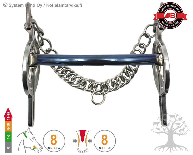 The Bombers Lifetime Guarantee covers all stainless steel, sweet iron and brass products from manufacturing defects in materials and workmanship for the lifetime of the product. Bombers will repair or replace at its discretion any manufacturing defect in these products free of charge. The Bombers Lifetime Guarantee does not cover damage caused by accident, improper care or cleaning, non-standard usage, negligence or unauthorised alterations. Bomber lifetime guarantee does also not cover some mouthpieces which can be chewed, those are for example; Cable, Leather, Flexible tubing and bomber blue. Those mouthpieces are not suitable for horses that chew.