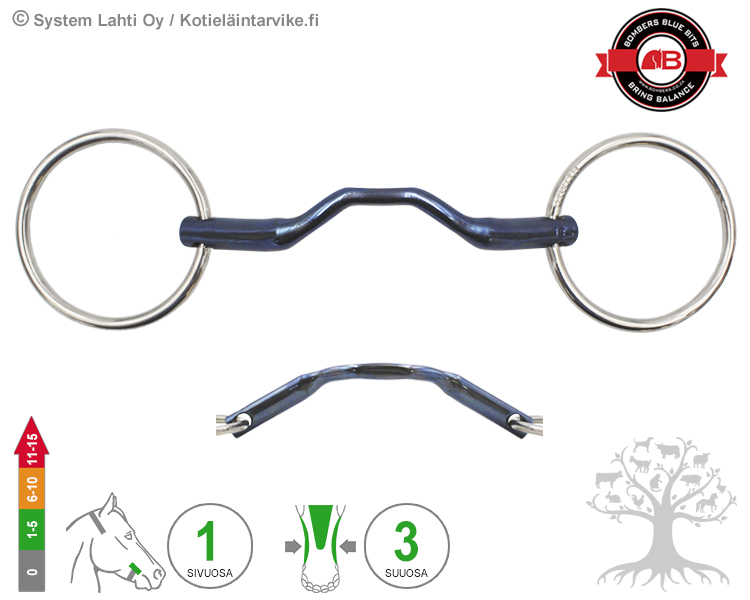 CHEEKPIECE - LOOSE RING - Bomber’s preferred cheekpiece. The Loose Ring allow for immediate release and relief from tongue and bar pressure. The bit is immediately reset to a neutral position in the horse’s mouth. The cheekpiece ring size is about Ø67mm for bit width 90-115mm and about Ø78mm for bit width 120-160mm. A loose cheek piece moves vertically through the mouthpiece.