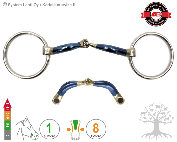 CHEEKPIECE - LOOSE RING - Bomber’s preferred cheekpiece. The Loose Ring allow for immediate release and relief from tongue and bar pressure. The bit is immediately reset to a neutral position in the horse’s mouth. The cheekpiece ring size is about Ø67mm for bit width 90-115mm and about Ø78mm for bit width 120-160mm. A loose cheek piece moves vertically through the mouthpiece.