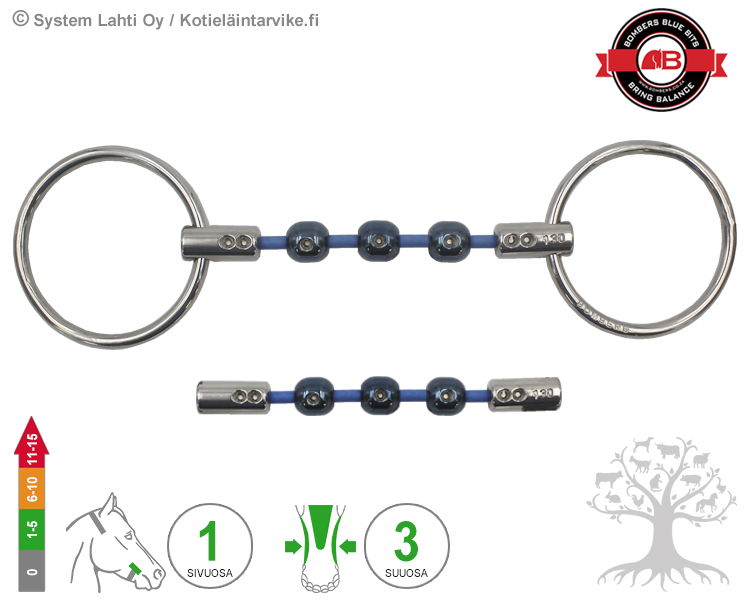 CHEEKPIECE - LOOSE RING - Bomber’s preferred cheekpiece. The Loose Ring allow for immediate release and relief from tongue and bar pressure. The bit is immediately reset to a neutral position in the horse’s mouth. The cheekpiece ring size is about Ø67mm for bit width 90-115mm and about Ø78mm for bit width 120-160mm. A loose cheek piece moves vertically through the mouthpiece.