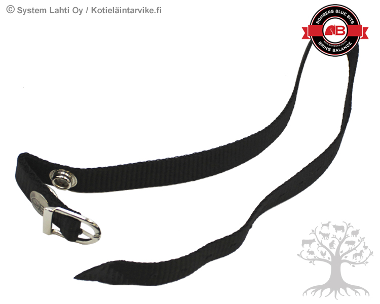 Bombers Nylon Curb Strap. Adjustable nylon curb strap with snap fastening and metal buckle. The total length of the nylon strap is about 59cm and the width is 18mm.