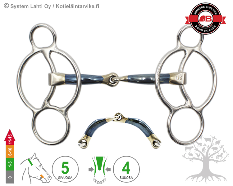 The bit consists of a mouthpiece inside the mouth and a cheekpiece acting outside the head. The overall effects of the bit should be mutually supportive and guiding aids for the horse, as the horse will not be able to understand the rider’s use of conflicting / mutually exclusive aids. When using stronger lever bit, the rider should be aware of and understand the operation of the bits and their effects. The unpleasant pressure or pain caused by the bit always causes resistance in the horse, like the so-called an escape reaction in which the rider loses contact or control of the horse. This type of loss of control of the horse usually only results in the choice of an even stronger bit, although the situation would usually require a softer alternative.