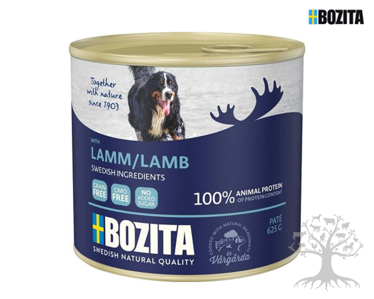 Bozita Naturals Lamb Lampaanliha 625g VILJATON. Bozita Lamb sisältää täyteläistä ja maistuvaa ruotsalaista lampaanlihaa. Tavallista herkullisempi makuelämys. Tämä herkullinen patee valmistetaan luonnollisista raaka-aineista ilman vehnää, sokeria, soijaa tai väriaineita. Lisänä luonnollinen MarcoGard®, joka auttaa vahvistamaan koiran immuunisuojaa.