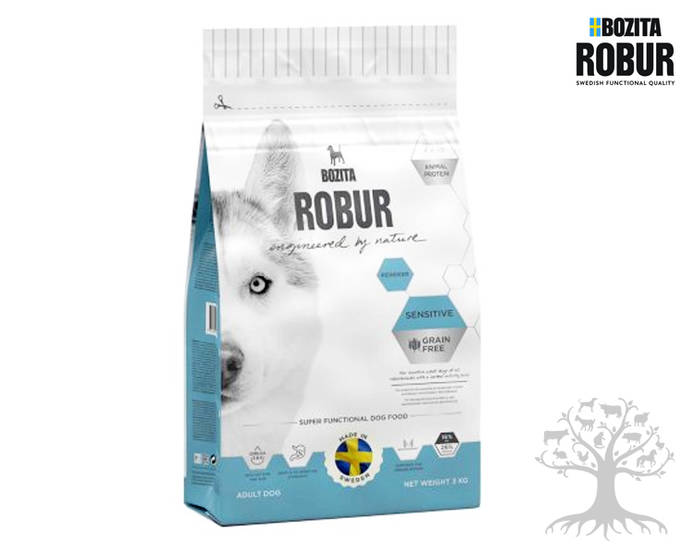 Bozita Robur Sensitive with Reindeer on täysrehu herkkävatsaisille täysikasvuisille koirille, joilla on normaali tai korkea aktiivisuustaso.
