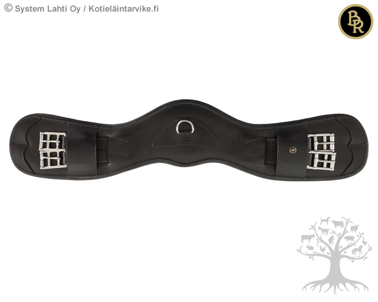 BR Koulusatulavyö Newbury Leather. Pehmeästä sekä laadukkaasta nahasta valmistettu koulusatulavyö, joissa molemmissa päissä joustot. Vyön hyvä anatominen muotoilu antaa hevoselle hyvän liikkumavapauden. Geeli satulavyön sisäpinnassa hevosen herkimmillä alueilla pehmentää hevoseen kohdistuvaa satulavyön aiheuttamaa painetta, hikoilua ja puristusta sekä pitää vyön ja satulan hyvin paikoillaan ja oikeassa asennossa. Vyössä on D-rengas, johon voi halutessaan kiinnittää esimerkiksi apuohjia. Vyön molemmilla puolilla rollerisoljet. Kaikki soljet ovat ruostumatonta terästä.