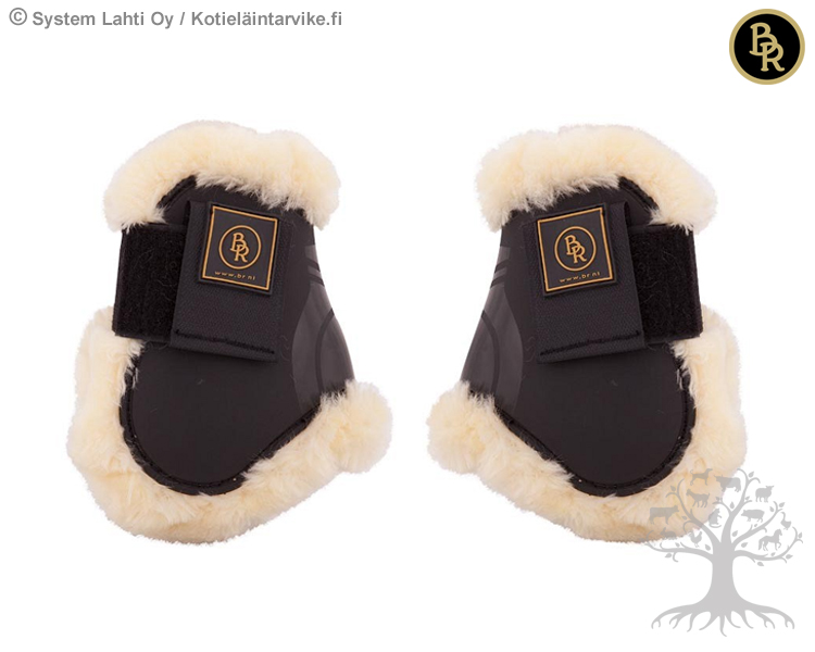 The fetlock boots are made of sturdy, anatomically shaped polyurethane and feature a stylish glossy print. They are lined with soft, synthetic sheepskin and close with a strong folded back Velcro closure elastic insert strap. The protectors are fitted all around the fetlock, which prevent them from sliding down and losing their function. These fetlock boots match with the BR Tendon Boots Snuggle (article 292133).