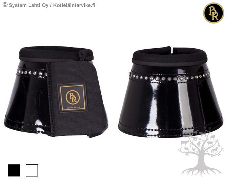 BR Lakeribootsit Glamour Lacquer. Tyylikkäät ja kiiltäväpintaiset lakeribootsit, joissa on hienot kimaltavat koristestrassit, musta neopreenivuori ja pitävät tarranauhakiinnitykset. Bootsien 5.5mm paksu neopreenivuori ja pehmustettu yläreuna suojaa hyvin hevosen kavioita, ruununrajaa ja vuohiskuoppaa sekä kantoja. Myydään pareittain. Hienot ja helppohoitoiset bootsit kotiin, valmennuksiin ja kisoihin!