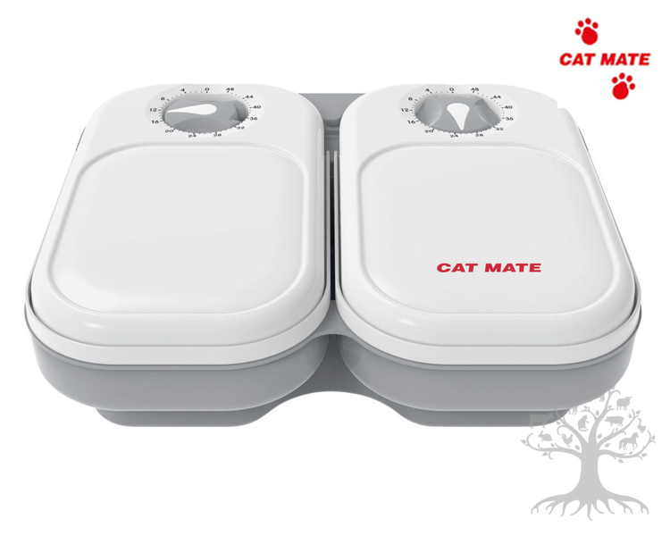 Cat Mate © C200 Ajastettava Ruokinta-automaatti. Automaattinen, ajastettava ruokinta-automaatti ruokkii yhtä jopa kahta kissaa tai pientä koiraa, kun olet poissa - päivällä, illalla tai kesken työpäivän. Ruoka pysyy tuoreena kahdessa helposti puhdistettavassa osastossa, jotka on suljettu tiiviisti sulkeutuvilla kansilla. Ruokinta-automaatin sisäänrakennetulla jääpakkauksella (jäädytys pakastimessa), pidät ruoan viileänä ja tuoreena jopa 6 tuntia. Aseta vain kunkin kannen ajastin avautumaan vaadittavaan aikaan, jopa 48 tuntia myöhemmin.