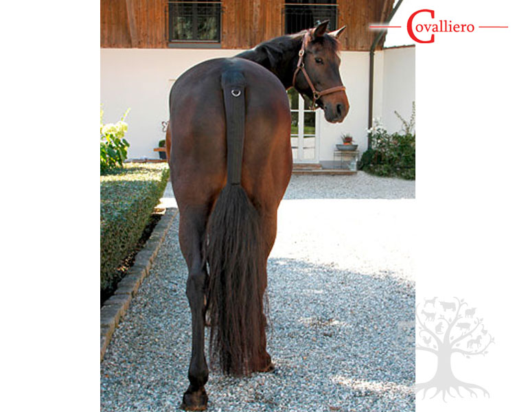 Covalliero Häntäsuoja TailGuard Black. Helppohoitoinen neopreenista valmistettu häntäsuoja hevoselle. Häntäsuojan sisäpinta on pehmeää ja joustavaa kumimateriaalia, joten se pysyy hyvin paikoillaan. Pitkä yhtenäinen tarranauha ja yläreunassa D-rengas kiinnitystä varten. Häntäsuoja suojaa hyvin hinkkaatumiselta. Helppo pitää puhtaana ja puhdistaa. Häntäsuojan pituus noin 45cm.
