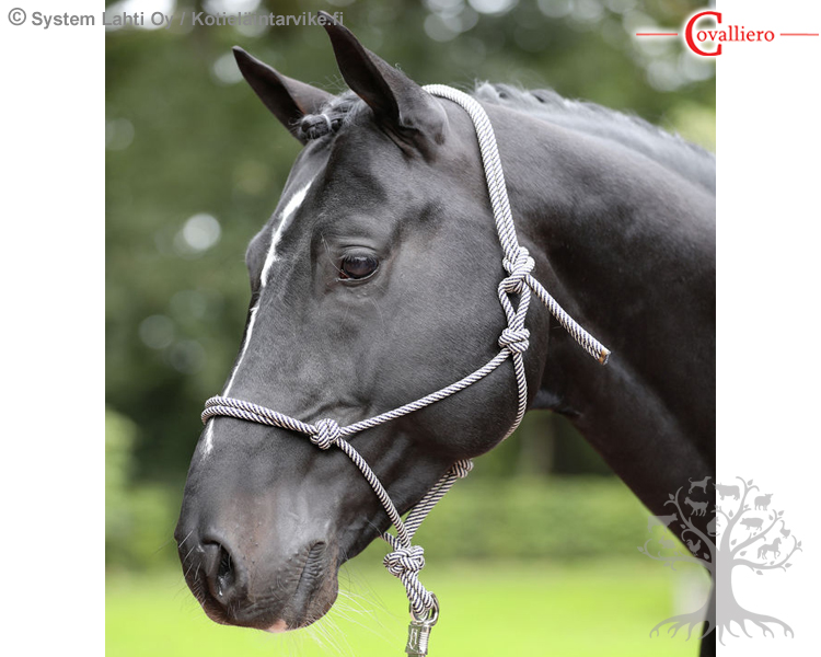 Covalliero Naruriimu Knotted Navy Beige. Laadukas, kestävä ja solmittu, perinteinen naruriimu hevoselle. Niskassa ja turvan päällä 2-kertaiset narut. Naruriimua voi säätää siirtämällä solmukohtia. Vaikutuksiltaan tehokkaampaa naruriimua käytetään vain hevosen maastakäsittelyyn ja -työskentelyyn sekä koulutukseen, joten sitä ei suositella käytettäväksi missään muussa tarkoituksessa/tilanteissa. Turvallisuussyistä älä jätä naruriimua hevosen päähän silloin, kun se on yksin mm. karsinassa, tarhassa tai laitumella. Näyttävä 2-värinen, Navy-Creme (tummansininen-kermanvalkoinen) naruriimu! Valmistettu Polypropeiinista, joka on vettä ja likaa hylkivä materiaali.