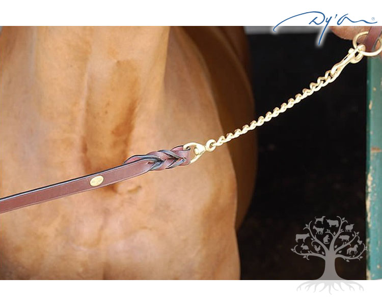 Dyon Collection B834 Nahkainen Riimunnaru messinkiketjulla Brass. Dyonin erittäin laadukas, kaunis ja todella tyylikäs nahkainen ketjuriimunaru. Nahkaosan pituus 210cm ja messinkiketjun pituus 60cm. Riimunnarussa messinkinen pistoolilukko. Näyttävä, hieno riimunnaru!