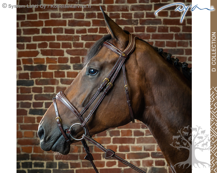 The hallmark of this collection is its beauty: All D Collection items are finished with cream-coloured thread and brass buckles. Premium D Collection is made of Dy’on leather. The Dy’on leather is produced by vegetable tanning, and it stands out for the beauty and fine finishing of its leather. Everything in collection is interchangeable. That enables you to create your own bridle by selecting the accessories of your choice. Almost all the components of a given collection can thus be combined. That offers you a vast range of options. D Collection are particularly complete. It includes bridles, reins, breastplates, and a large assortment of accessories and nosebands. D Collection exceptional style makes this Dy’on’s most popular collection. Its elegance and fine details never fail to make an impression!