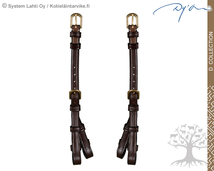 Dyon D Collection Cheekpieces Double. Dyon's high quality double cheekpieces with cream-coloured thread and brass buckles.