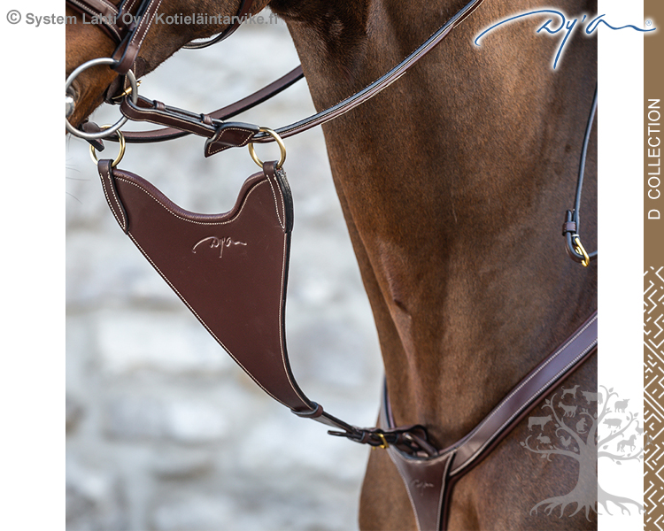 The hallmark of this collection is its beauty: All D Collection items are finished with cream-coloured thread and brass buckles. Premium D Collection is made of Dy’on leather. The Dy’on leather is produced by vegetable tanning, and it stands out for the beauty and fine finishing of its leather. Everything in collection is interchangeable. That enables you to create your own bridle by selecting the accessories of your choice. Almost all the components of a given collection can thus be combined. That offers you a vast range of options. D Collection are particularly complete. It includes bridles, reins, breastplates, and a large assortment of accessories and nosebands. D Collection exceptional style makes this Dy’on’s most popular collection. Its elegance and fine details never fail to make an impression!