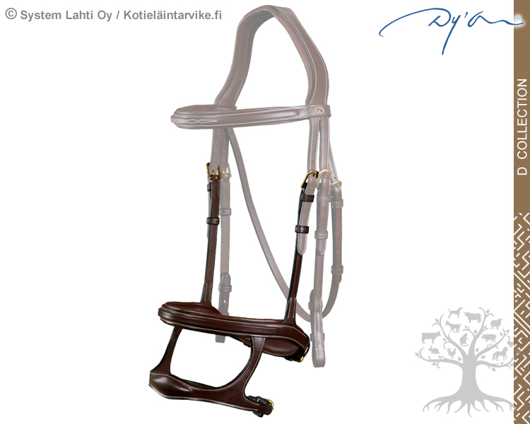Dyon D Collection Noseband Double. Dyon's high quality double noseband with slightly square-raised leather, cream-coloured thread and brass buckles.