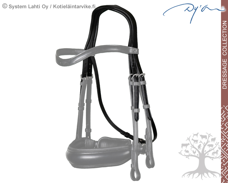 Dyon Dressage Collection Headpiece Double Bridle S-Shaped. Dyon's high quality anatomic headpiece for double bridles with leather-coloured thread and stainless steel buckles.
