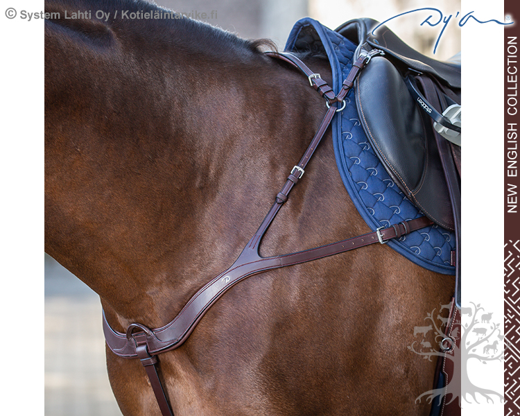 Dyon New English Collection Breastplate Anatomic. Dyon's high quality anatomical breastplate with 5 points of attachment, leather-coloured thread and stainless steel buckles.