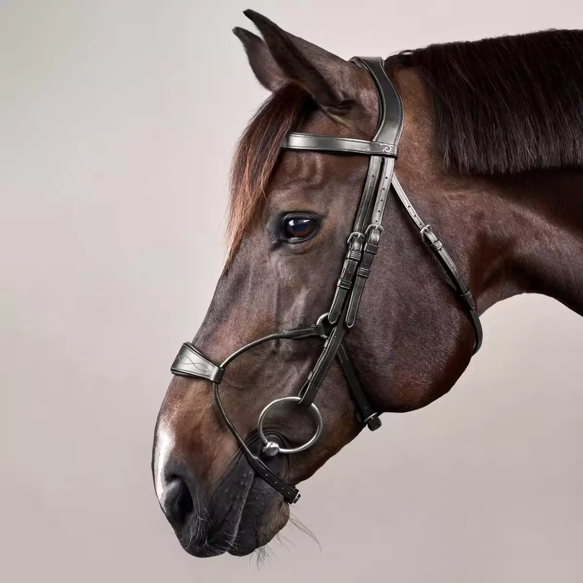 Every element of this bridle is crafted for horse comfort and rider effectiveness. The hybrid noseband is positioned to protect facial nerves while maintaining stability, avoiding pinching or unnecessary pressure. The S-shaped headpiece allows for natural ear movement, reducing tension and promoting relaxed, willing contact. Combined with high-quality leather and expert craftsmanship, this bridle is a must-have for riders who seek both performance and well-being.