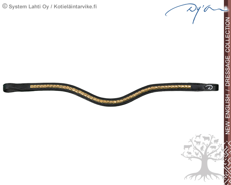Dyon New English Collection Browband Brass Clincher V-Shaped. Dyon's high quality clincher browband with leather-coloured thread and stainless steel D-logo.