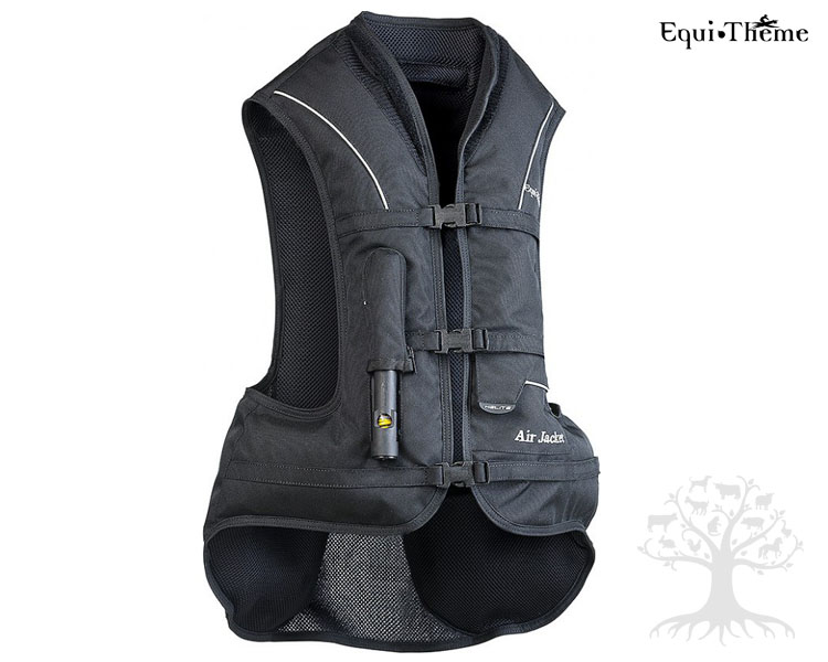 Equi-Theme Turvaliivi Air-Vest. Erittäin laadukas, kevyt ja hengittävä ilmatäytteinen turvaliivi eli paukkuliivi aikuisille ja lapsille. Paukkuliivi puetaan aina vaatteiden päälle, koska ilmatyynyt täyttyvät ulospäin. Air-vest turvaliivi on perinteisiä turvaliivejä huomattavasti kevyempi ja mukavampi käyttää. Ratsastaja kiinnittää turvaliivin laukaisuhihnan satulan etukaaren D-lenkkiin tai kiinnityshihnaan. Putoamisen yhteydessä turvaliivin kiinnityshihna kiristyy ja laukaisee patruunan täyttäen turvaliivin ilmatyynyt jopa 0.1 sekunnissa. Liivin ’key-ball’ -tekniikkaa laukaisee turvaliivin "ilmatyynyt" riippumatta siitä mihin suuntaan ratsastaja putoaa. Turvaliiviin patruuna on helppo ja nopea vaihtaa uuteen. Turvaliivin käyttö lisää huomattavasti ratsastajan turvallisuutta.