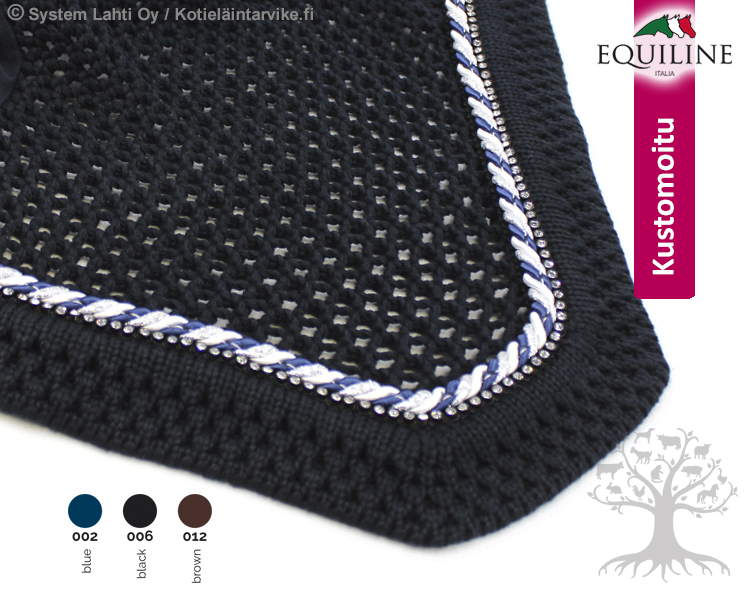 Kaikki tuunatut ja kustomoidut tuotteet ovat erikoistilauksia, koska ne valmistetaan kuluttajan toiveiden mukaisesti. Erikoistilauksilla ei ole vaihto- tai palautusoikeutta. Kuluttajasuojalaki 6:16 §3. Kustomoidut Equiline -tuotteet valmistetaan yksilöllisesti Equilinen tehtaalla Italiassa. Toimitusaika on noin 4 viikkoa. HUOM! Ennen tuotteiden tilausta lue TOIMITUSEHTOMME ja huolellisesti kohdat 4. Toimitusajat ja 6. Palautusoikeus!