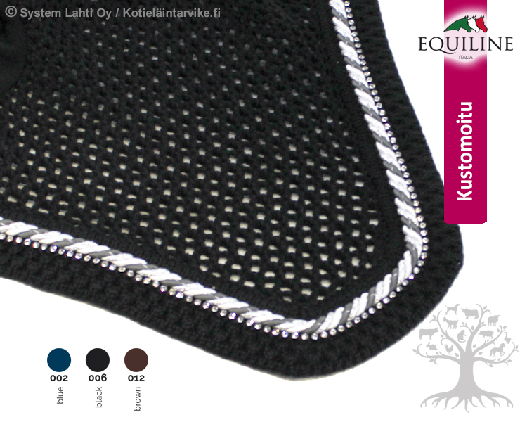 Kaikki tuunatut ja kustomoidut tuotteet ovat erikoistilauksia, koska ne valmistetaan kuluttajan toiveiden mukaisesti. Erikoistilauksilla ei ole vaihto- tai palautusoikeutta. Kuluttajasuojalaki 6:16 §3. Kustomoidut Equiline -tuotteet valmistetaan yksilöllisesti Equilinen tehtaalla Italiassa. Toimitusaika on noin 4 viikkoa. HUOM! Ennen tuotteiden tilausta lue TOIMITUSEHTOMME ja huolellisesti kohdat 4. Toimitusajat ja 6. Palautusoikeus!