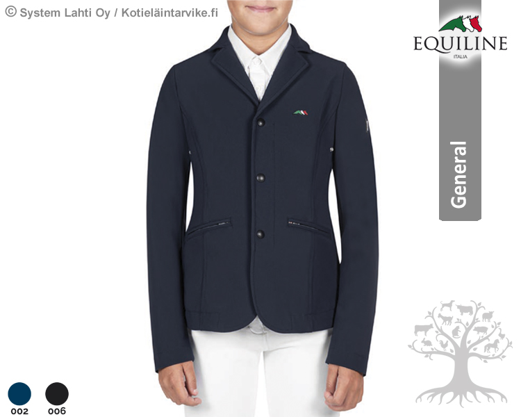 Equiline B-Move Bounded on hieman paksumpi, tekninen, erittäin joustava ja nopeasti kuivuva kangas, joka on valmistettu useasta eri kerroksesta. B-Move -kankaan valmistusprosessi takaa kisatakille erinomaisen hengittävyyden (Body Moisture System), joustavuuden (Super Stretch), nukkaantumattomuuden, helppohoitoisuuden (Easy-care, Quick Drying) ja maksimaalisen käyttömukavuuden (Extra Comfort). Kisatakissa on vetoketjulliset etutaskut ja rinnassa brodeerattu Equiline -logo sekä edessä vetoketju- ja painonappikiinnitys. Erittäin mukavantuntuinen, istuva ja edustava kisatakki. Suosittelemme!