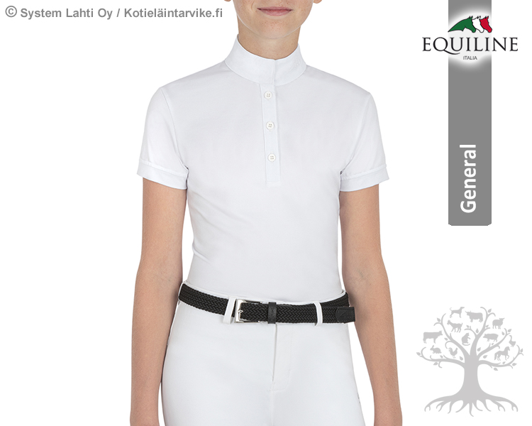 Equiline General Tyttöjen Kisapaita Jupiterk. Equilinen huippulaadukas, tyylikäs, ajaton ja lyhythihainen tyttöjen tekninen Polo -kisapaita, joka on huippuunsa suunniteltu ja valmistettu urheiluvaate. Paidan tekniset ominaisuudet tulevat esiin erityisesti paidan leikkauksissa, muodoissa, materiaaleissa ja ennen kaikkea korkeassa laadussa. Kisapaita on valmistettu 4-suuntaan joustavasta, erittäin hengittävästä, nopeasti kuivuvasta ja teknisestä kankaasta, joka antaa erinomaisen liikkumavapauden. Kisapaidan kauluksessa piilonappi, brodeerattu Equiline -logo ja nappilistassa valkoiset napit. Erittäin mukavantuntuinen, istuva ja edustava kisapaita. Suosittelemme!