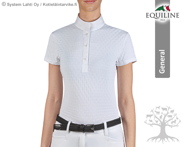 Equiline General Naisten Kisapaita Camberk. Equilinen huippulaadukas, tyylikäs, ajaton ja lyhythihainen naisten tekninen Polo -kisapaita, joka on huippuunsa suunniteltu ja valmistettu urheiluvaate. Paidan tekniset ominaisuudet tulevat esiin erityisesti paidan leikkauksissa, muodoissa, materiaaleissa ja ennen kaikkea korkeassa laadussa. Kisapaita on valmistettu 4-suuntaan joustavasta, erittäin hengittävästä, nopeasti kuivuvasta ja teknisestä 3D -kuvioidusta kankaasta, joka antaa erinomaisen liikkumavapauden. Tyylikkäässä kauluksessa hieno brodeerattu Equiline -logo ja nappilistassa on piilotetut napit. Erittäin mukavantuntuinen, istuva ja edustava kisapaita. Suosittelemme!