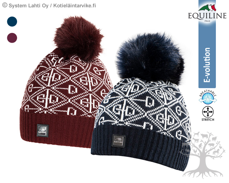 Equiline Limited Pipo Evolution. Equilinen erittäin laadukas, kaunis, tyylikäs ja ihanan lämmin vuorellinen ja karvatupsullinen neulepipo. Edessä hieno Equiline-logomerkki. Pipon sisäpinnalla miellyttävän tuntuista fleecekangasta. Superihanan pehmeä ja ylellisen tyylikäs pipo!