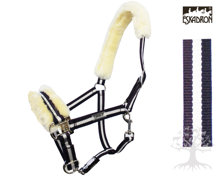 Eskadron Riimu Sheepskin Pin Buckle Darknavy . Laadukas lampaankarvalla pehmustettu Eskadronin Classic Sports- Collection riimu on valmistettu kaksinkertaisesta 25 mm nailonnauhasta. Riimussa on pehmoinen lampaankarvapehmuste turvalla ja niskassa. Niskahihnassa vasemmalla puolella ja turvan alla säätömahdollisuus. Turvan päällä Eskadron Classic Sports Collection- printti ja toisessa poskihihnassa Eskadron- logo. Vahvat teräksen väriset metalliset soljet sekä pikalukkokiinnitys riimun vasemmalla puolella. Todella tyylikäs laaturiimu! Huom! Kuvasta poiketen riimussa lampaankarvapehmusteet turvalla ja niskassa.