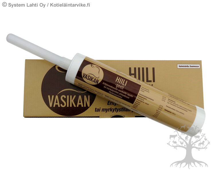 FinnCow Calf Charcoal Gel 4x360g. Calf Carbon Gel is a fast-acting supplementary feed for calves in case of diarrhoea, intestinal disorders and poisoning. The porous structure of oak charcoal effectively binds toxins and harmful substances produced by bacteria in the calf's intestines. In addition to oak charcoal, calf charcoal gel contains electrolytes (sodium, potassium, chlorides) to replace the salts that are lost during diarrhoea. The electrolytes also motivate the calf to drink water. Inulin (prebiotic, fructo-oligosaccharide) supports the intestinal bacterial activity of the calf and promotes intestinal well-being. Calf charcoal gel firms the manure while preventing dehydration and improving the absorption of nutrients from the feed.